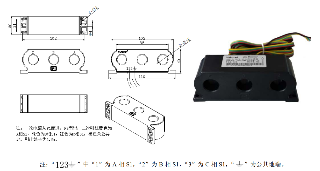 產(chǎn)品外形美觀,接線方便。外殼材料采用 PPT,作為交流電流信號采集元件,一般與