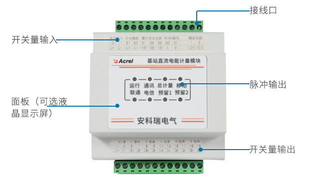 AMC16-DETT 基站直流電能計(jì)量模塊主要是針對(duì)有共享需求,且開關(guān)電源無分用戶電量計(jì)量功能的基站而設(shè)計(jì)的。儀表可對(duì)六個(gè)回路的直流電能進(jìn)行計(jì)量,并可為配套的霍爾傳感器提供工作電流,同時(shí)可通過上位機(jī)軟件實(shí)現(xiàn)零漂校準(zhǔn),具有遙測(cè)、遙 信、遙調(diào)、實(shí)時(shí)電量計(jì)量、供電質(zhì)量異常告警、信息存儲(chǔ)及處理、信息交互等功能。該模塊可分別計(jì)量三家運(yùn)營商的直流用電量,為基站節(jié)能改善提供詳細(xì)的數(shù)據(jù)依據(jù),為直流配電設(shè)備提供分項(xiàng)計(jì)量解決方案。