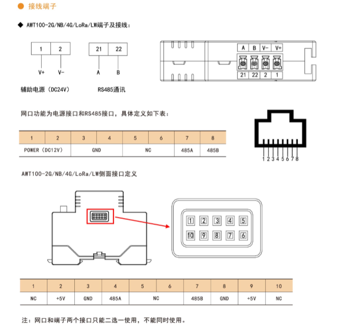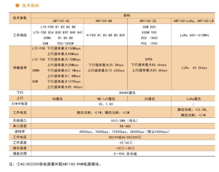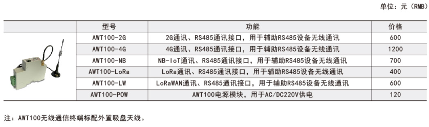 注:①AWT100-2G/NB/4G無線通信終端能通過安科瑞平臺(tái)協(xié)議與安科瑞服務(wù)器通訊。